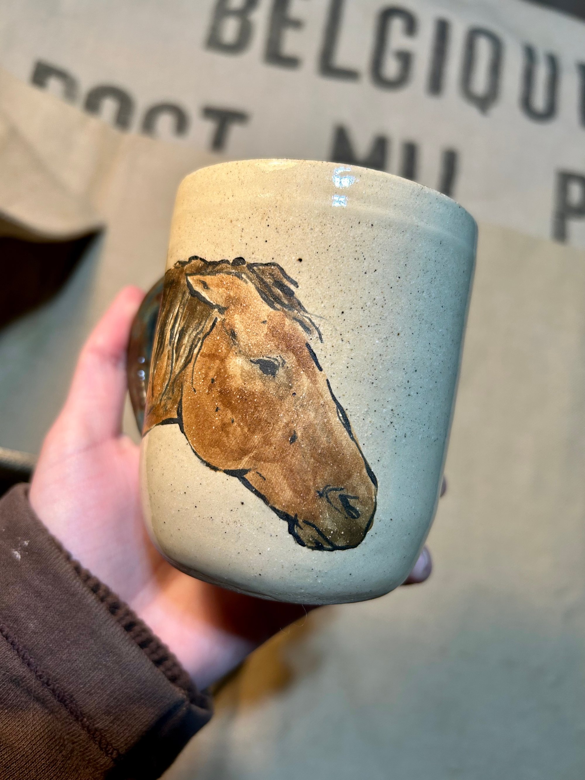 Handmade ceramic mug with a hand-painted bay horse… mug. For those grumpy morning people.