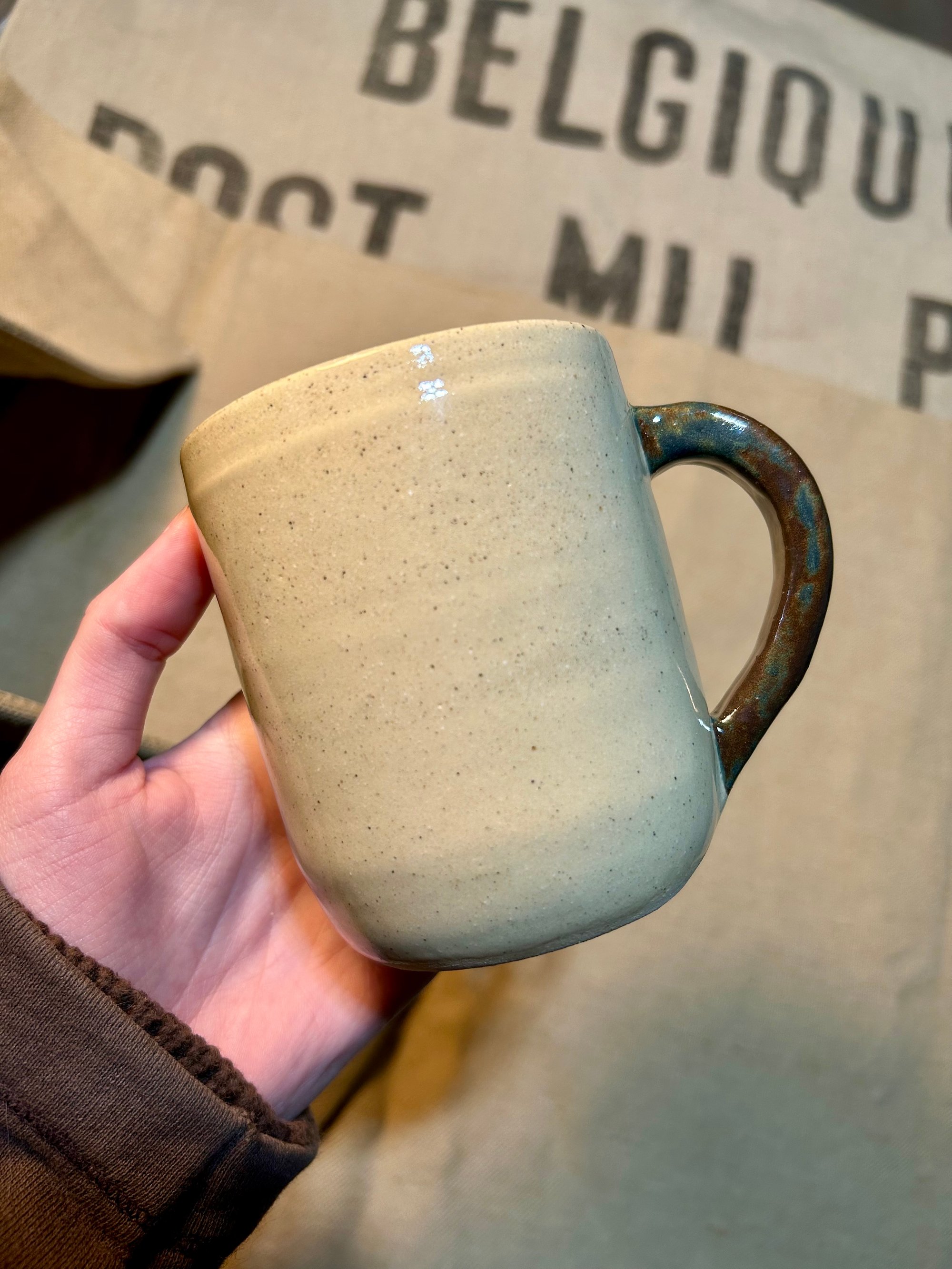 Approximate mug size: 4“ x 3“ Holds around 12 ounces.