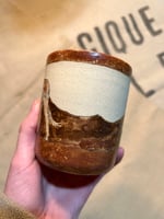 This tumbler was made with a buff colored stoneware clay body. There is some texture on the whole exterior. Mug colors may appear slightly different in person.