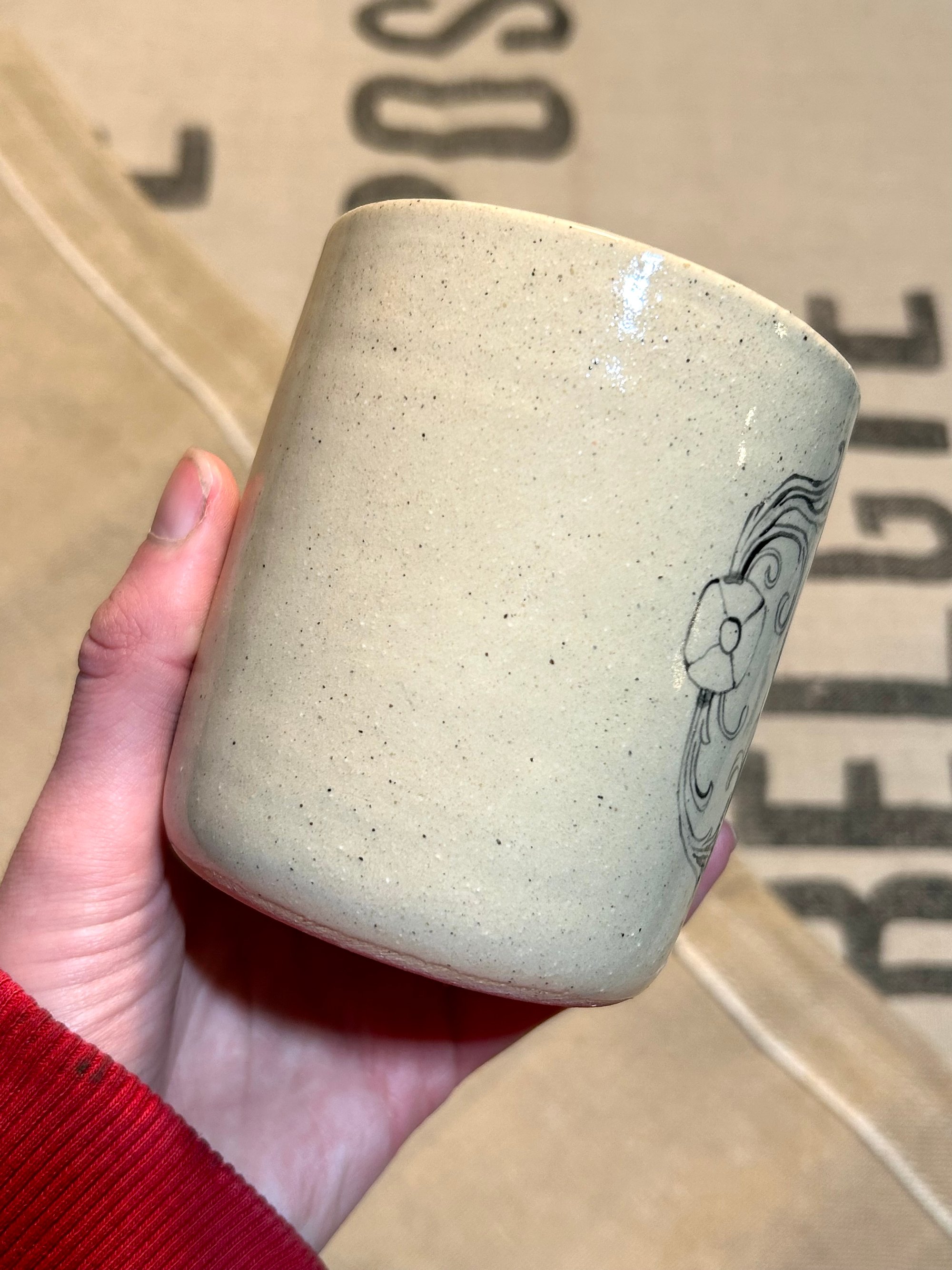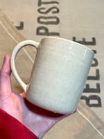 This mug was made with a buff colored stoneware clay body. It is ever so slightly textured in some places from the grog. Mug colors may appear slightly different in person.