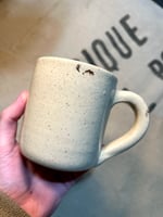 This mug was made with a buff colored stoneware clay body. There is some very slight texture. Mug colors may appear slightly different in person.