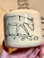 Handmade (wheel-thrown) ceramic mug, with a hand painted donkey. There are currently two of this design available!